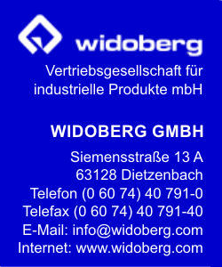 | Firma: | Widoberg Vertriebsgesellschaft für industrielle Produkte mbH |